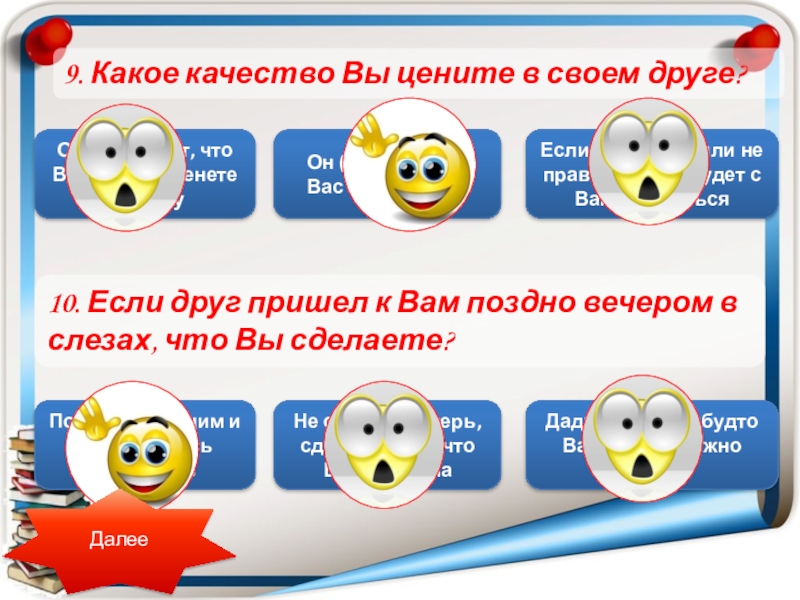 10. Если друг пришел к Вам поздно вечером в слезах, что Вы сделаете?
