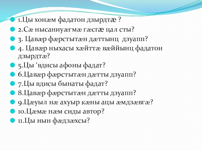 4. Цы ’вдисы афоны фадат? Цавæр фæрстытæн дзуапп дæтты?