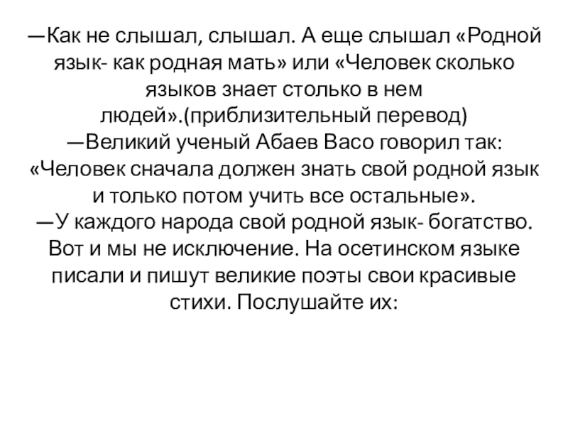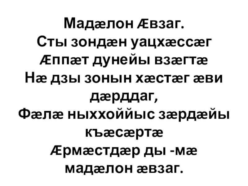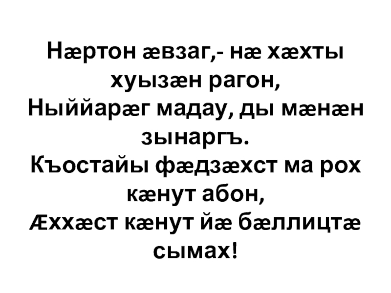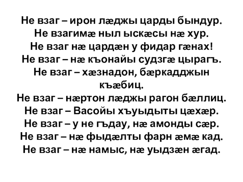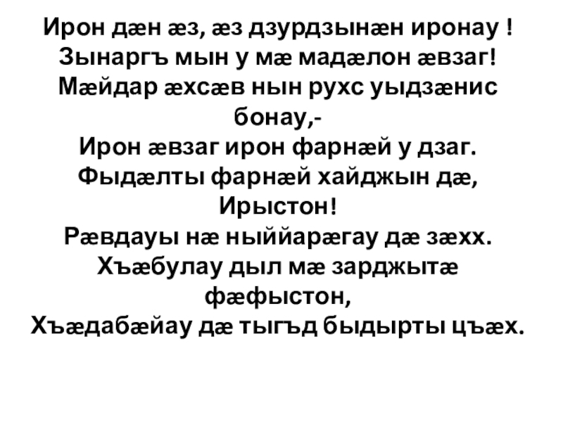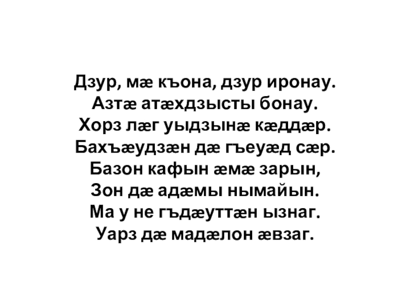 Цæй ацы дзæбæх ус! Дзæгъæлы ныхæстæ ницы