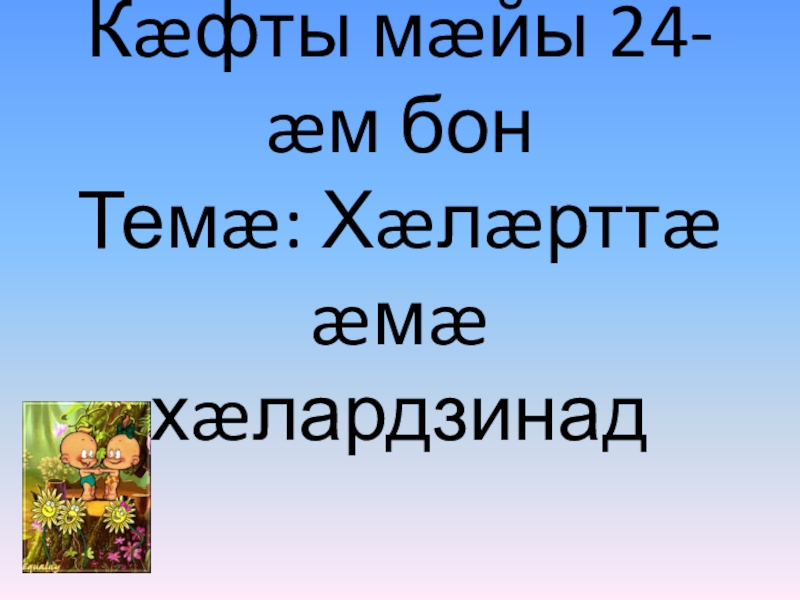 Слайд 2Кæфты мæйы 24- æм бон Темæ: Хæлæрттæ æмæ хæлардзинад
