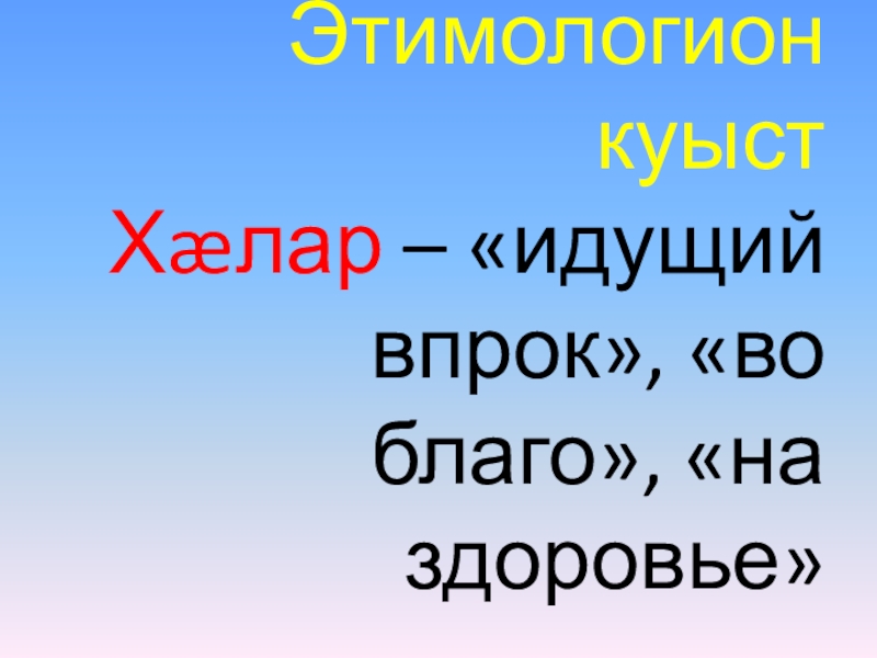 Слайд 4Этимологион куыст Хæлар – «идущий впрок», «во благо», «на здоровье»