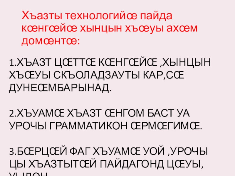Хъазты технологийœ пайда кœнгœйœ хынцын хъœуы ахœм домœнтœ:
