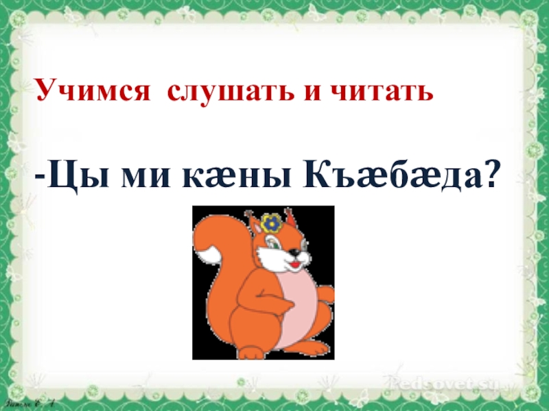 Слайд 10Учимся слушать и читать -Цы ми кæны Къæбæда?