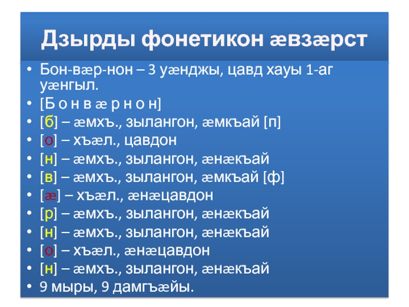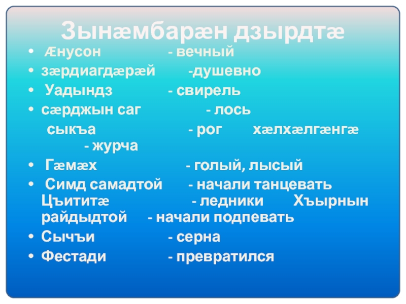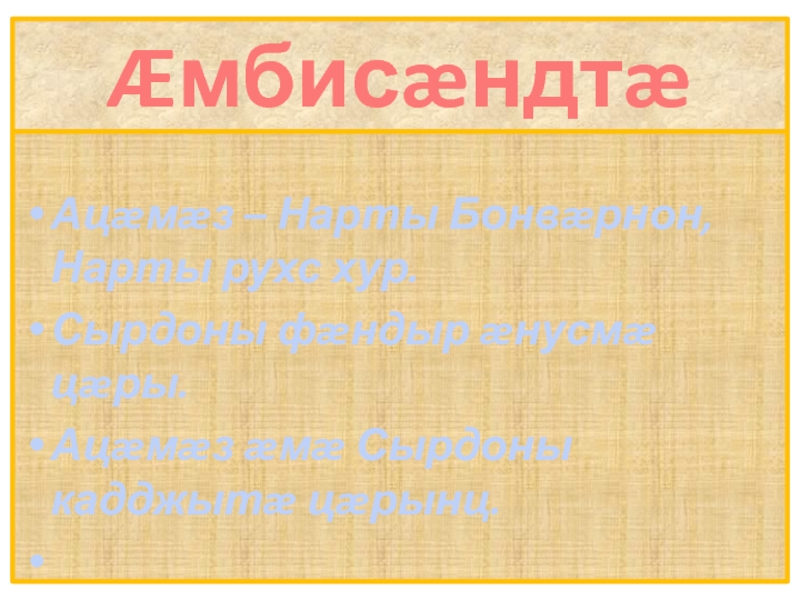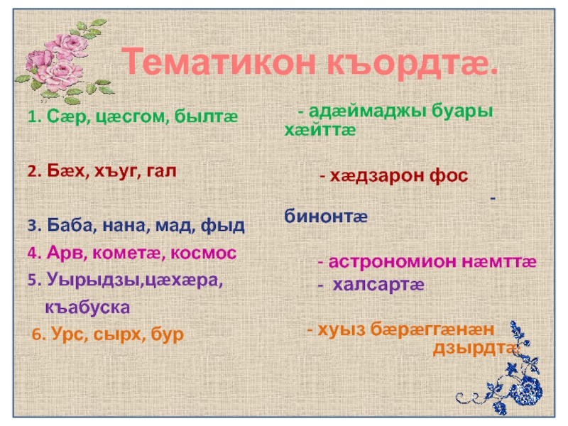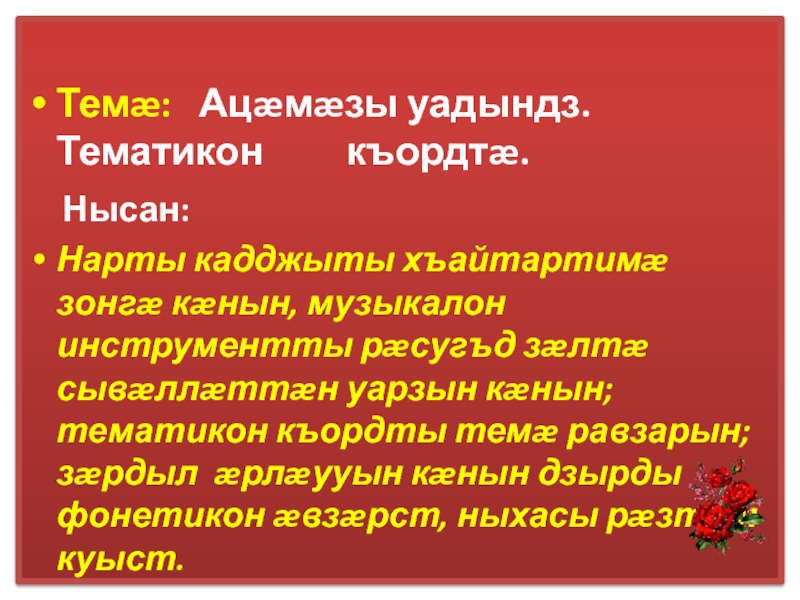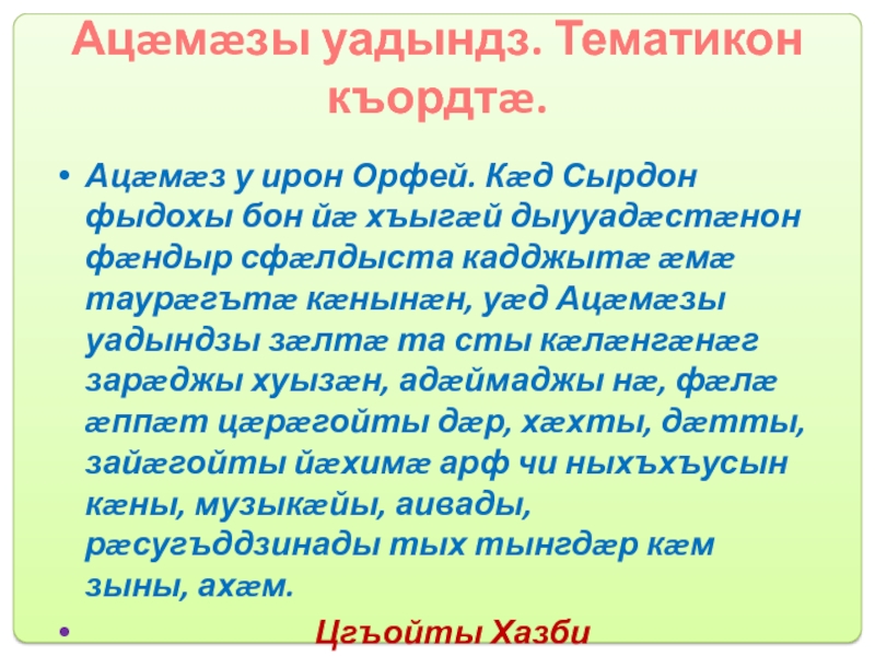 Ацæмæзы уадындз. Тематикон къордтæ.