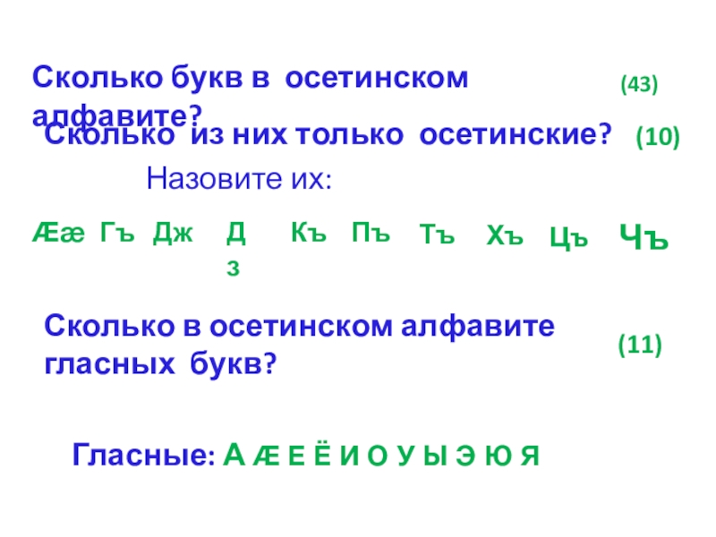 Гласные: А Æ Е Ё И О У Ы Э Ю Я