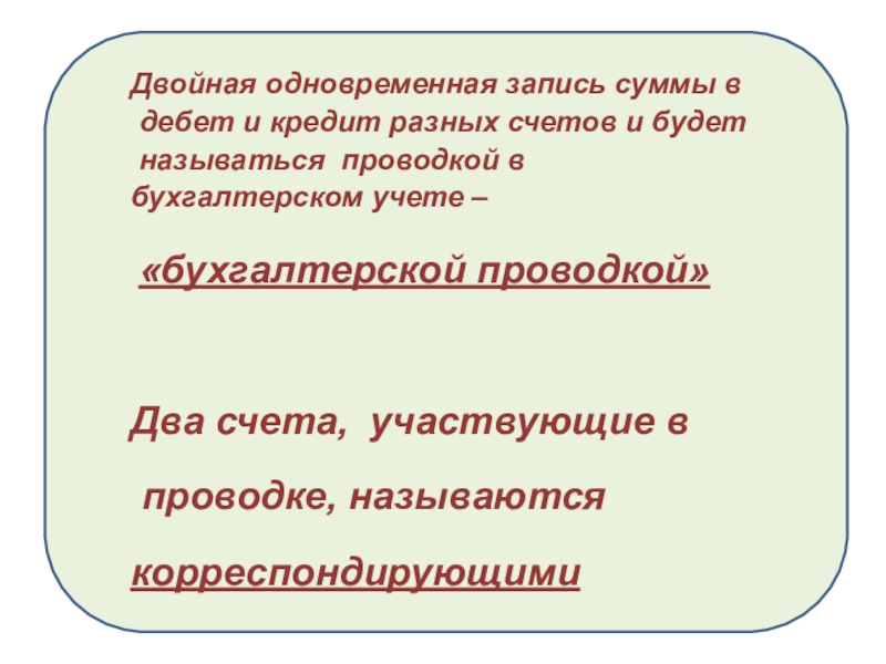Знакомство с двойной записью, бухгалтерской проводкой и отработка навыков составления бухгалтерских проводок)