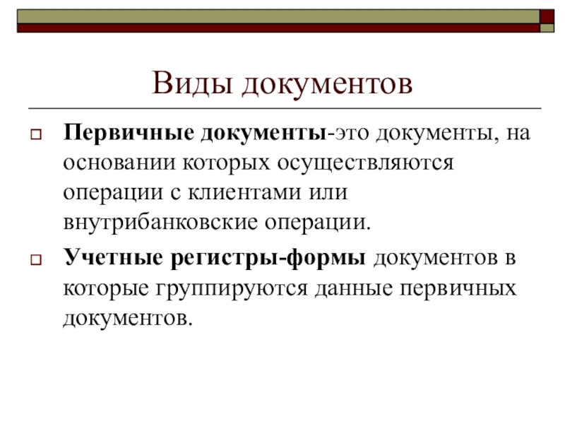 Первичные документы-это документы, на основании которых осуществляются операции с клиентами