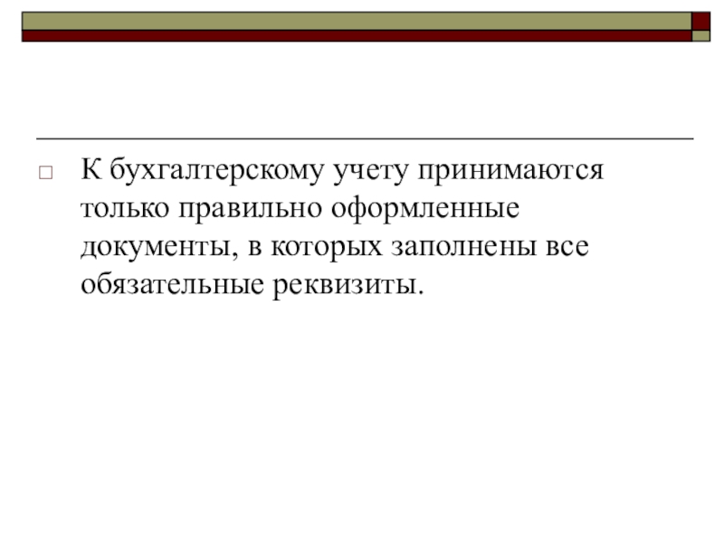 К бухгалтерскому учету принимаются только правильно оформленные документы, в которых заполнены