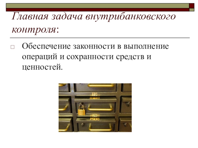 Слайд 10Главная задача внутрибанковского контроля: