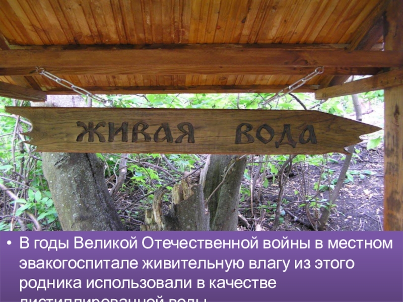 Слайд 5В годы Великой Отечественной войны в местном эвакогоспитале живительную влагу из этого