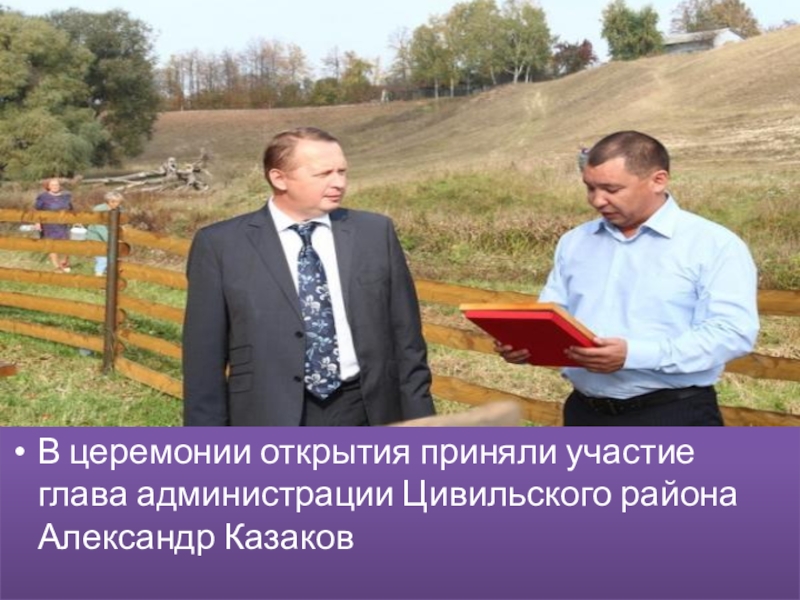 Слайд 4В церемонии открытия приняли участие глава администрации Цивильского района Александр Казаков