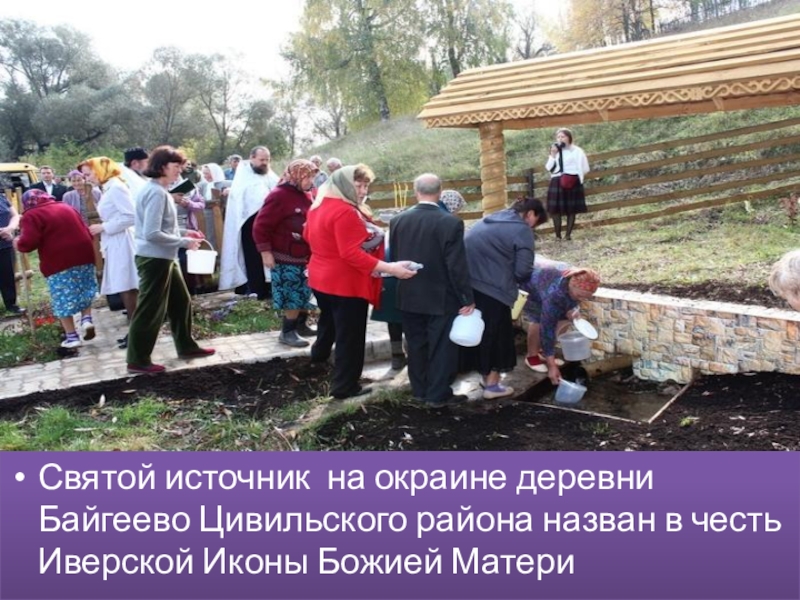 Слайд 6Святой источник  на окраине деревни  Байгеево Цивильского района назван в честь