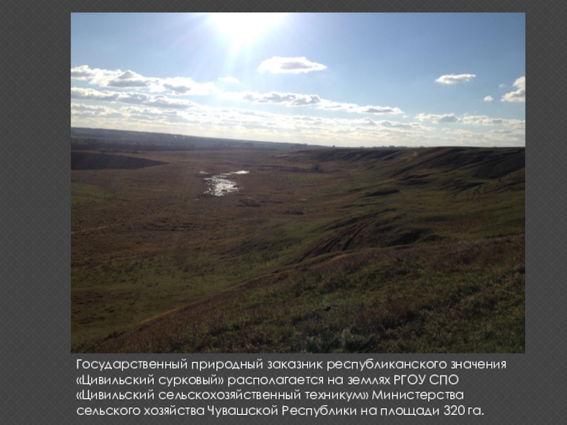 Слайд 4Государственный природный заказник республиканского значения «Цивильский сурковый» располагается на землях РГОУ