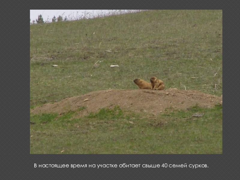 Слайд 5В настоящее время на участке обитает свыше 40 семей сурков.