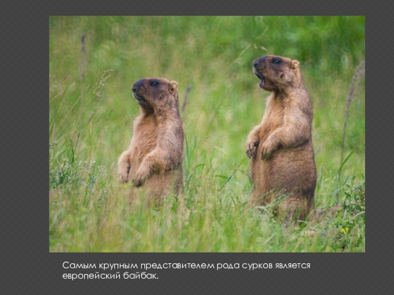 Слайд 6Самым крупным представителем рода сурков является европейский байбак.