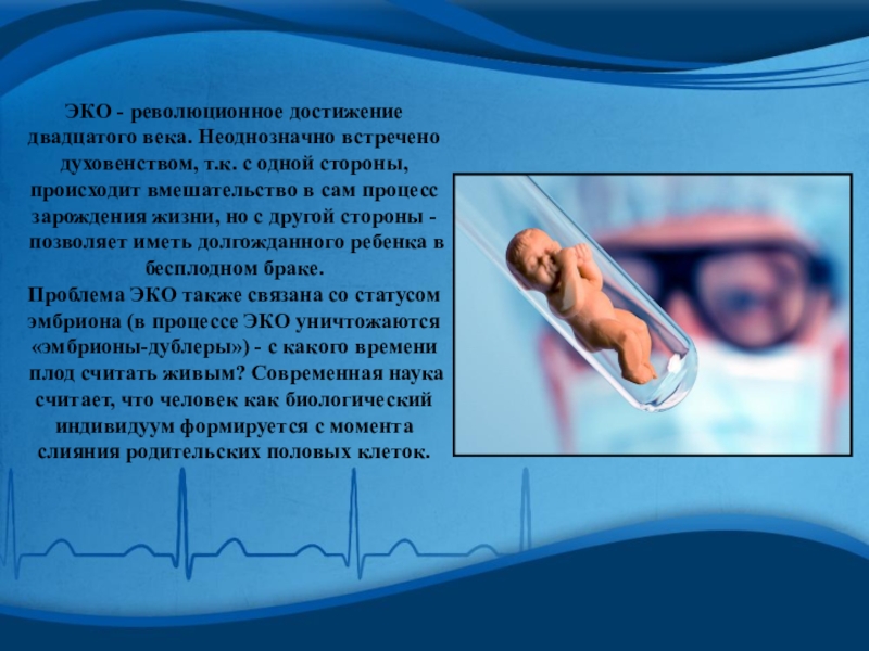 Слайд 20ЭКО - революционное достижение двадцатого века. Неоднозначно встречено духовенством, т.к. с
