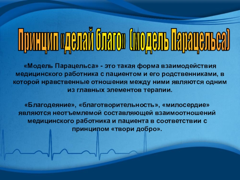 Слайд 10Принцип «делай благо» (модель Парацельса)