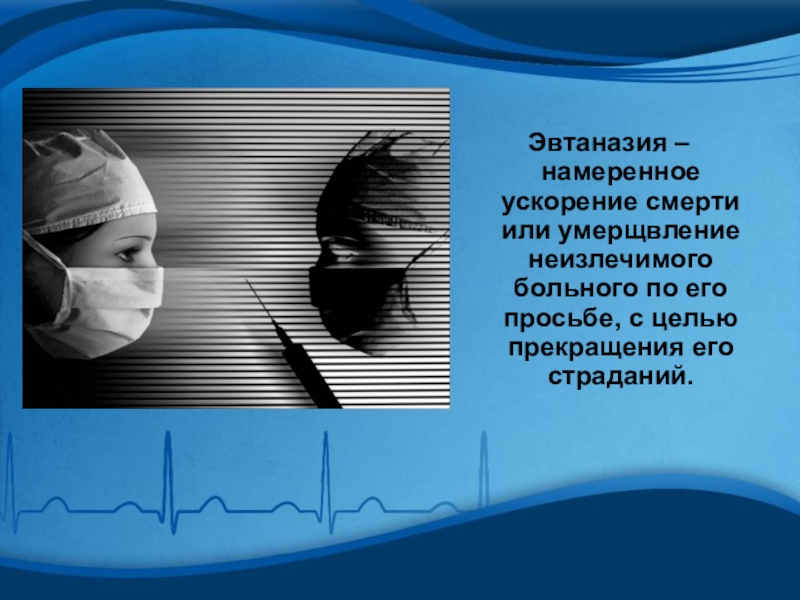 Слайд 17Эвтаназия – намеренное ускорение смерти или умерщвление неизлечимого больного по его