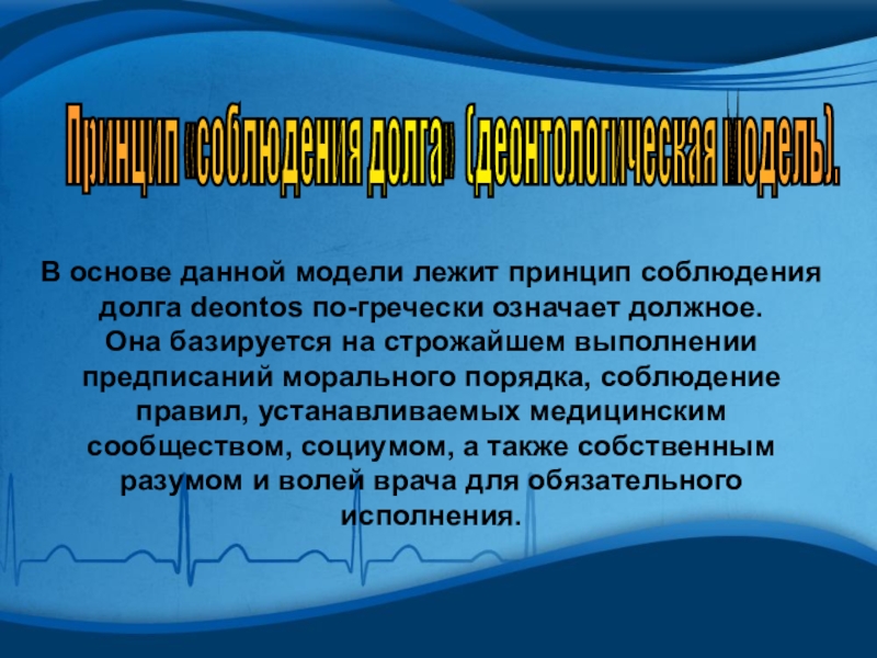 Слайд 11Принцип «соблюдения долга» (деонтологическая модель).