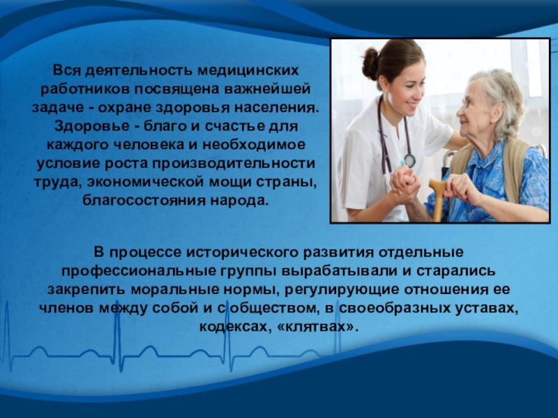 Слайд 5Вся деятельность медицинских работников посвящена важнейшей задаче - охране здоровья населения.