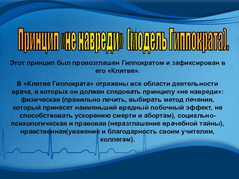 Слайд 9Этот принцип был провозглашен Гиппократом и зафиксирован в его «Клятве».