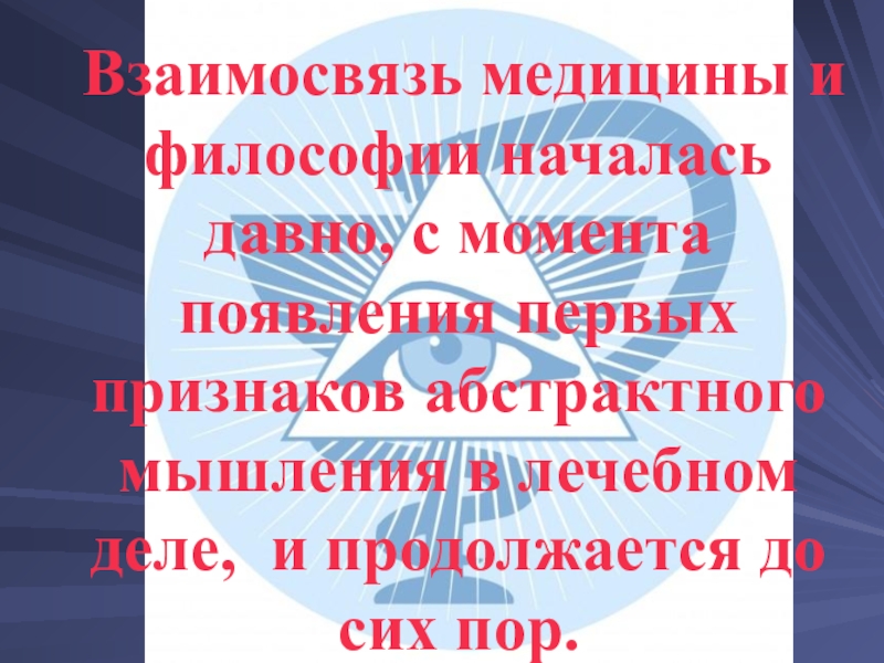 Слайд 2 Взаимосвязь медицины и философии началась давно, с момента появления первых признаков