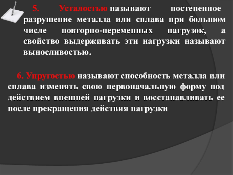 6. Упругостью называют способность металла или сплава изменять свою первоначальную форму под действием внешней нагрузки и восстанавливать ее после прекращения действия нагрузки