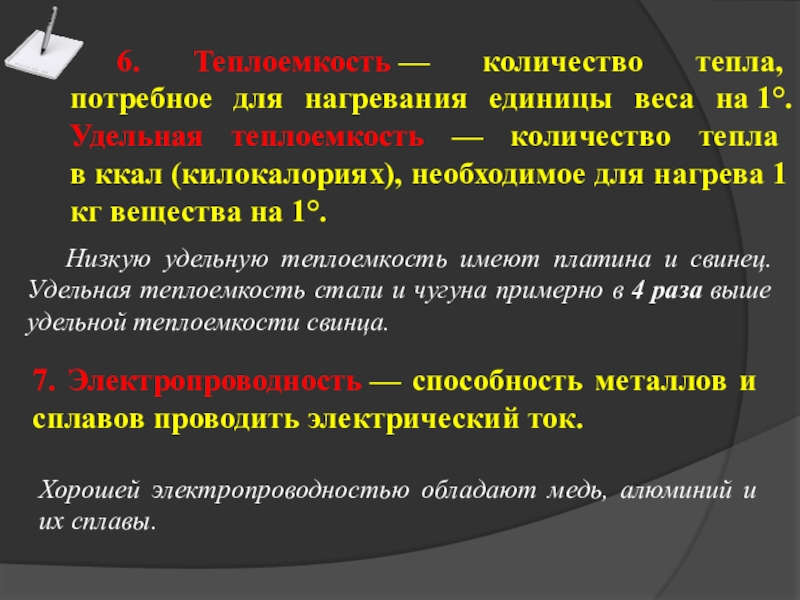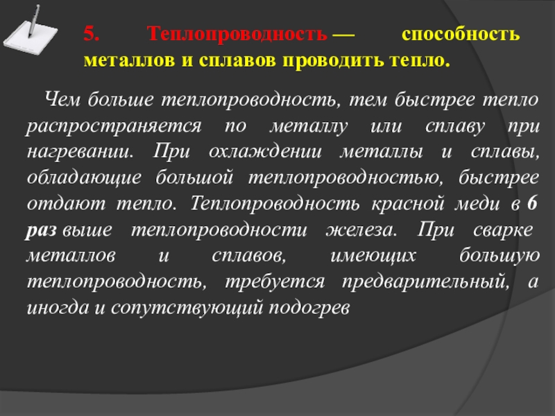 5. Теплопроводность — способность металлов и сплавов проводить тепло.