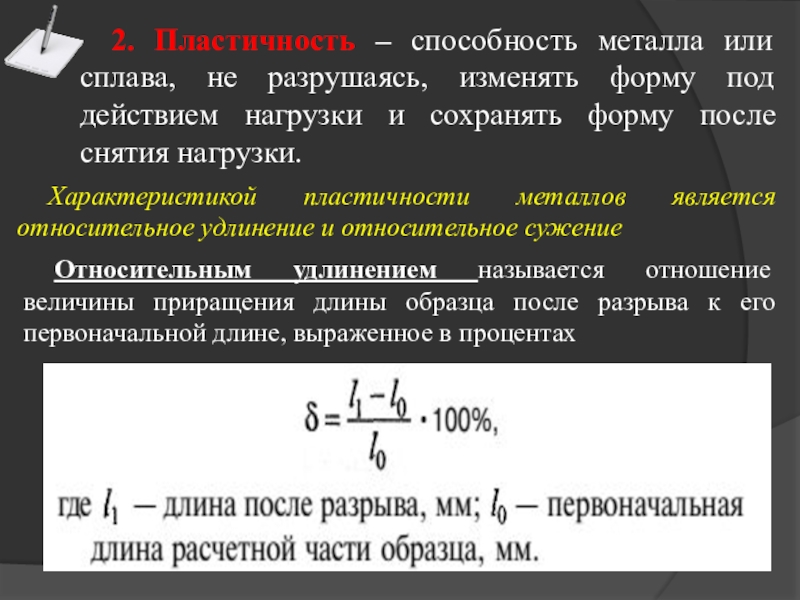 Характеристикой пластичности металлов является относительное удлинение и относительное сужение