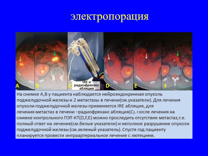 (комбинированный наркоз) 4 тонких иглоподобных электрода вводятся строго в область патологического роста (под контролем УЗИ или данных компьютерной томографии). По электродам подается высоковольтный строго дозированный электрический ток.