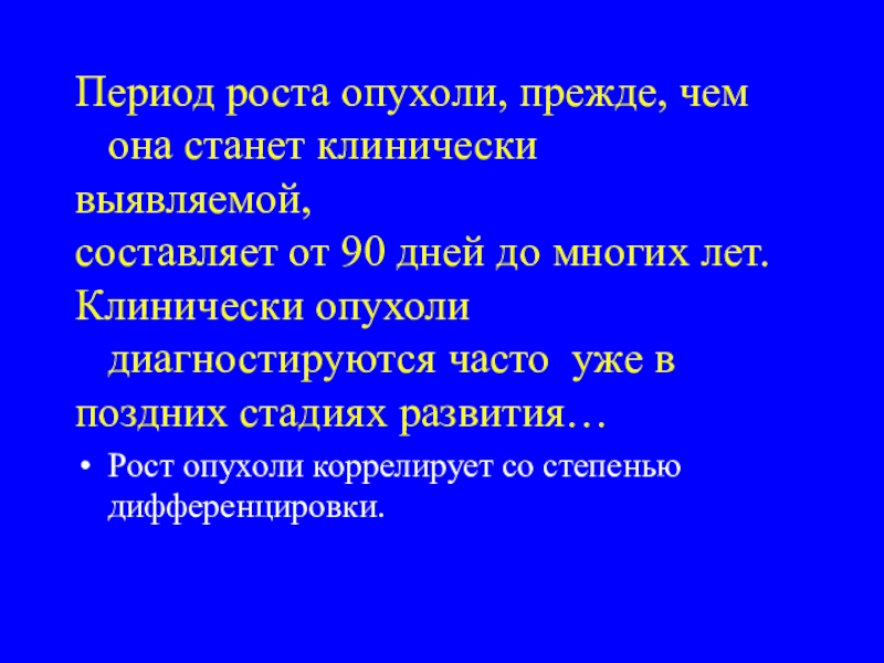 Слайд 49Период роста опухоли, прежде, чем она станет клинически
