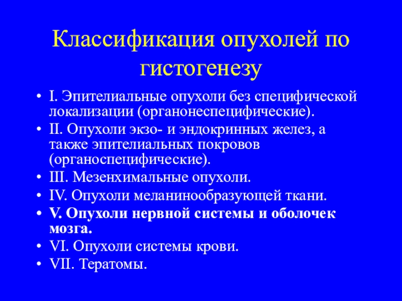 II. Опухоли экзо- и эндокринных желез, а также эпителиальных покровов (органоспецифические).