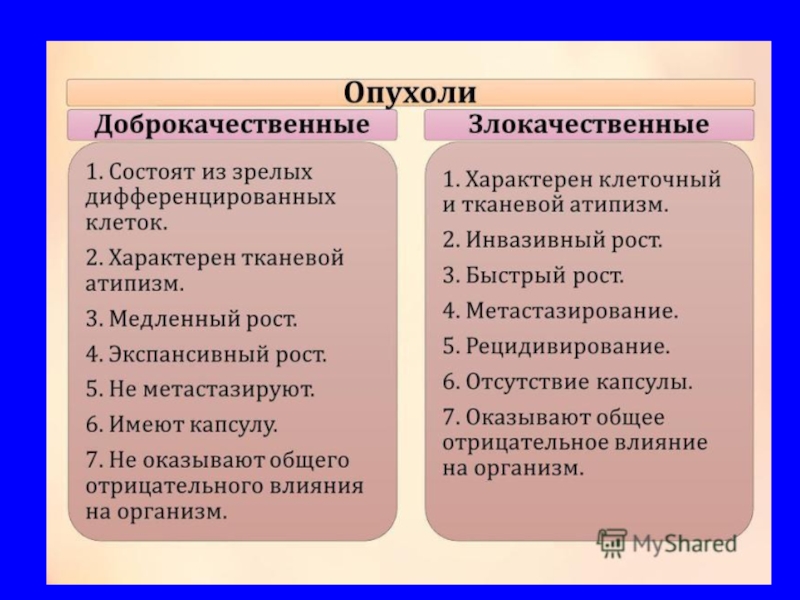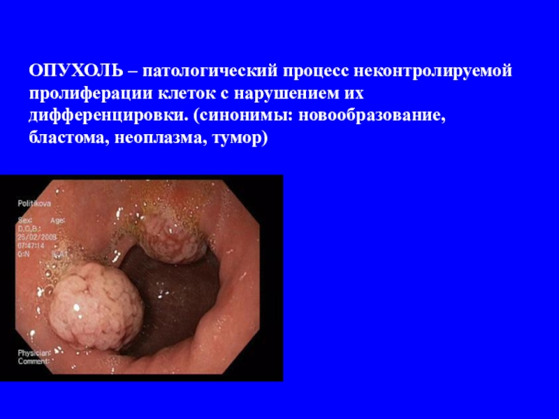 Слайд 9ОПУХОЛЬ – патологический процесс неконтролируемой пролиферации клеток с нарушением их дифференцировки.