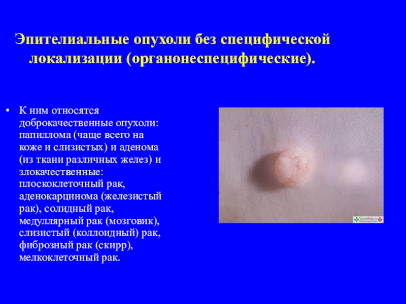 Слайд 37Эпителиальные опухоли без специфической локализации (органонеспецифические).