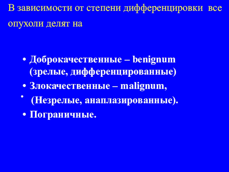 Слайд 44В зависимости от степени дифференцировки все опухоли делят на