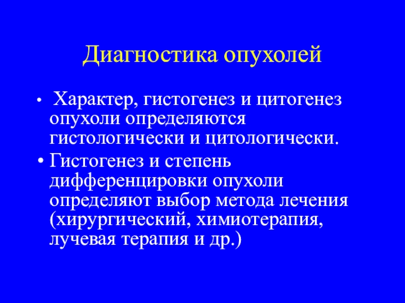 Гистогенез и степень дифференцировки опухоли определяют выбор метода лечения (хирургический, химиотерапия, лучевая терапия и др.)