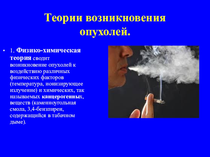 1. Физико-химическая теория сводит возникновение опухолей к воздействию