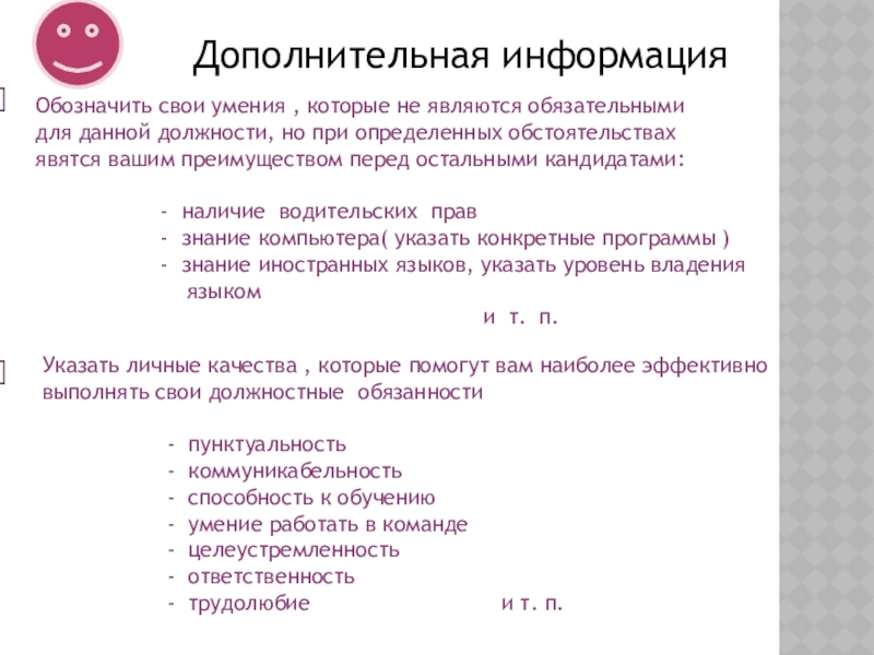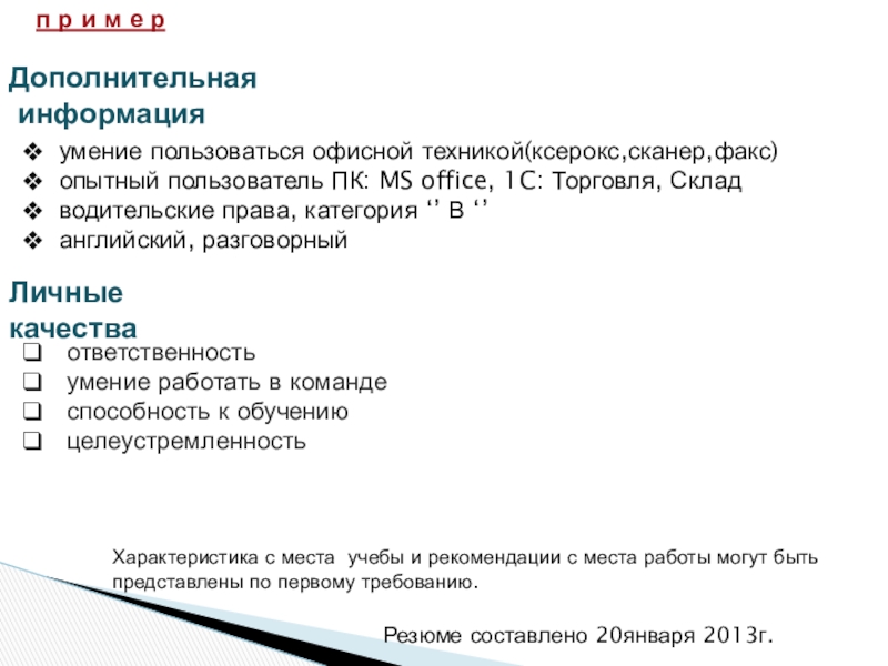 Характеристика с места учебы и рекомендации с места работы могут быть представлены по первому требованию.