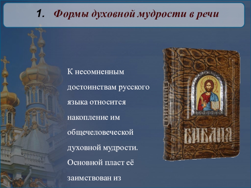 Слайд 4К несомненным достоинствам русского языка относится накопление им общечеловеческой духовной мудрости.