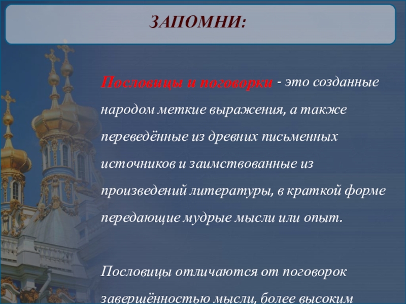 Пословицы и поговорки - это созданные народом меткие выражения, а также