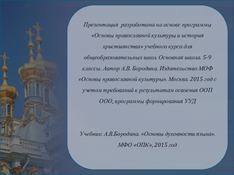Презентация разработана на основе программы «Основы православной культуры и история христианства»