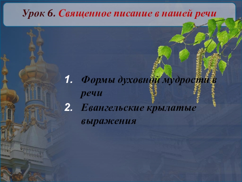 о том, сколько слов, понятий, крылатых выражений, духовного и историко-культурного содержания получил русский язык из Священного Писания;