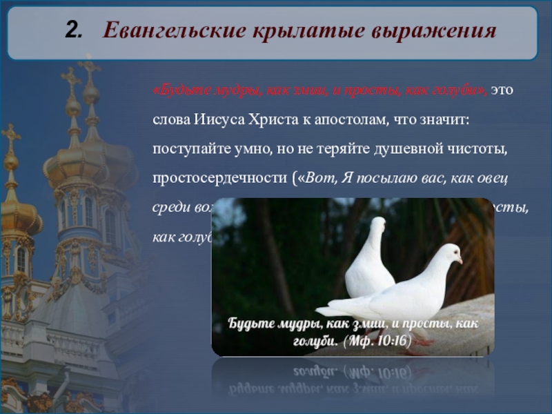 Слайд 20«Будьте мудры, как змии, и просты, как голуби», это слова Иисуса