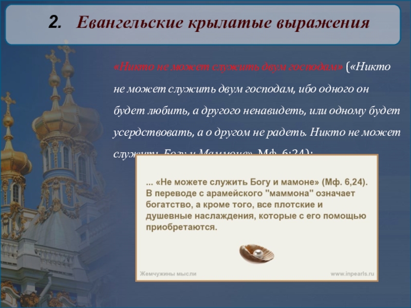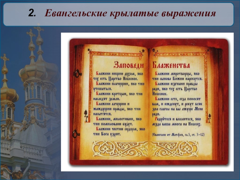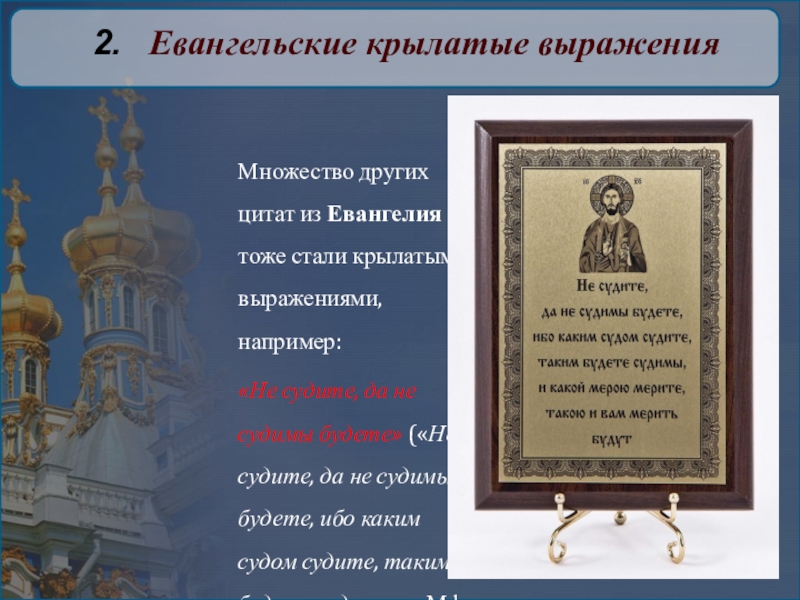 Слайд 17Множество других цитат из Евангелия тоже стали крылатыми выражениями, например: