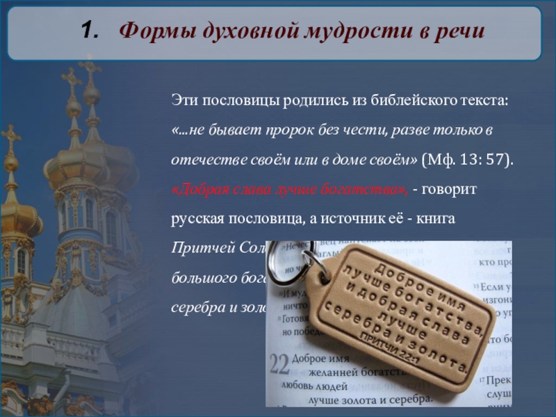 разве только в отечестве своём или в доме своём» (Мф. 13: 57). «Добрая слава лучше богатства», - говорит русская пословица, а источник её - книга Притчей Соломоновых: «Доброе имя лучше большого богатства, и добрая слава лучше серебра и золота» (Притч. 22:1).