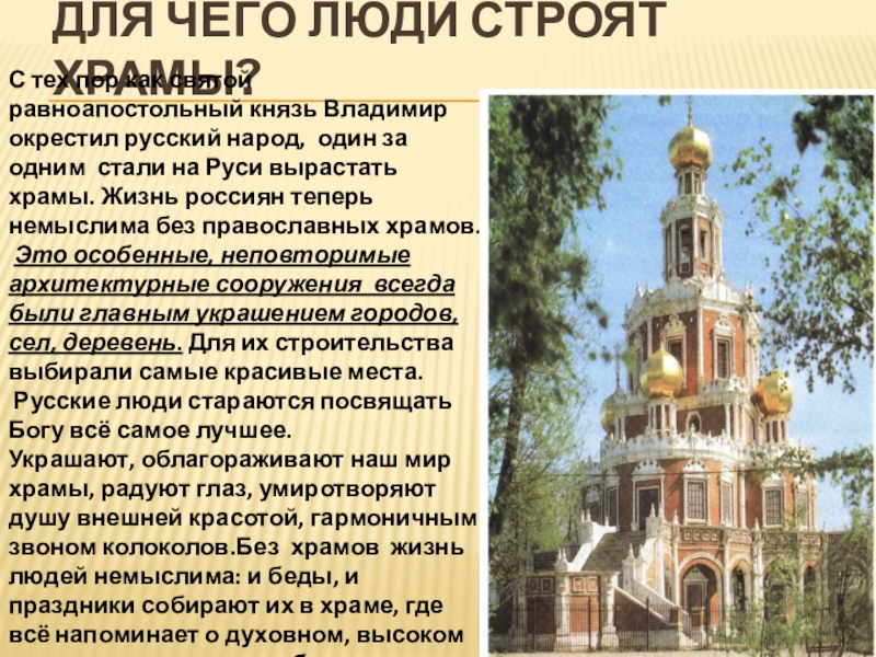 1). Храмы- это архитектурные сооружения, главные украшения города, села, деревни.