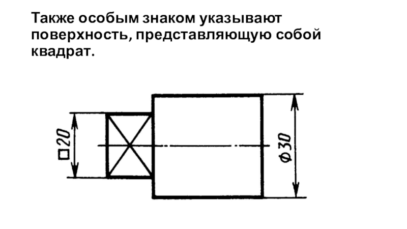 Слайд 7Также особым знаком указывают поверхность, представляющую собой квадрат.