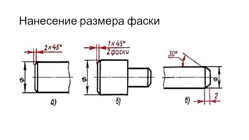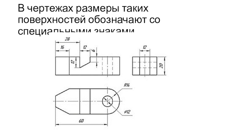 Слайд 14В чертежах размеры таких поверхностей обозначают со специальными знаками.