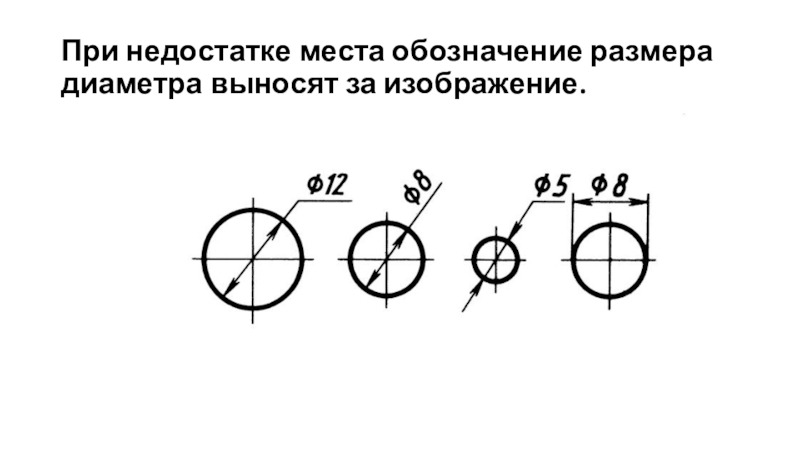 Слайд 6При недостатке места обозначение размера диаметра выносят за изображение.