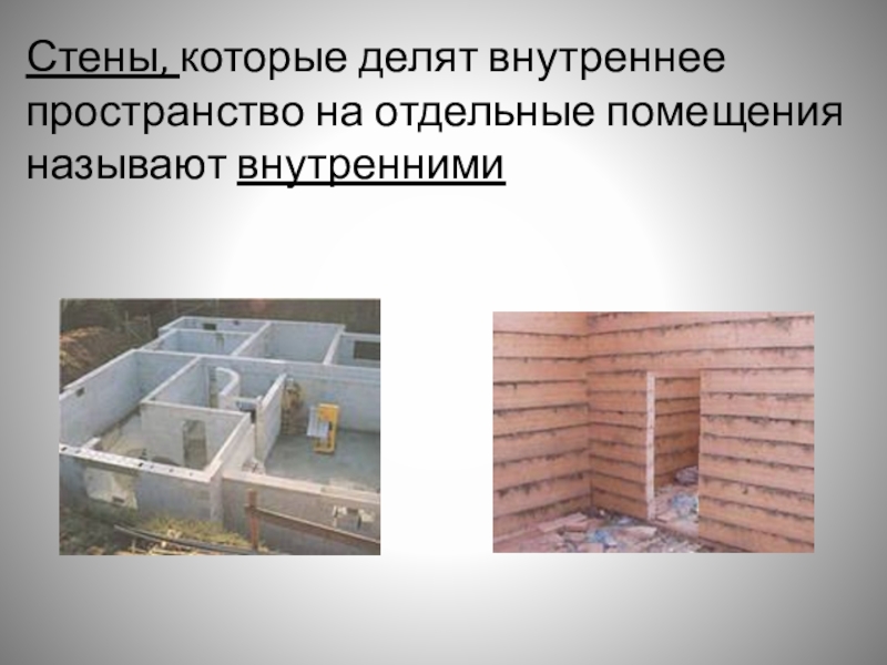 Стены, которые делят внутреннее пространство на отдельные помещения называют внутренними